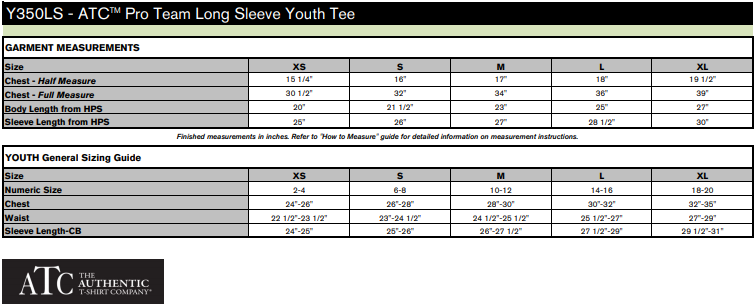 Youth Size Chart