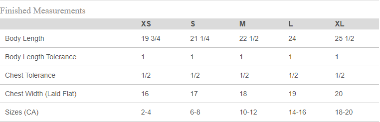Youth Size Chart