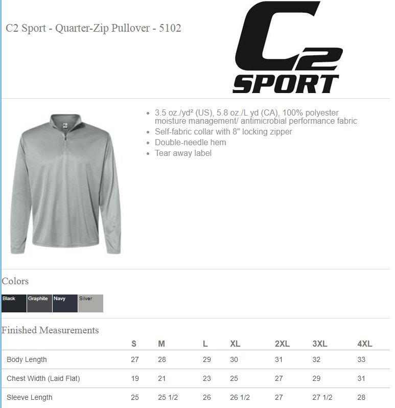 Graphite C2 Sport Men's 1/4 Zip Pull Over with a Heat Pressed Orenda Canoe Club Logo, Left Chest. Name options available on right sleeve for additional $5.